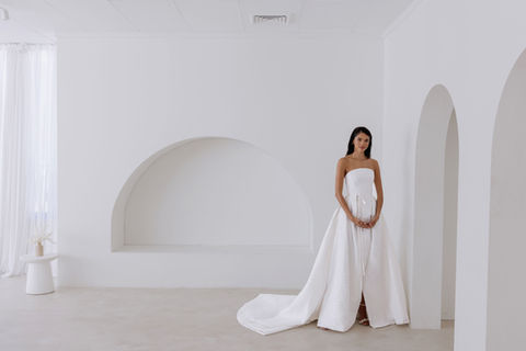 Each dress is tailor made with the option to customize to a bride’s specific requirements. Luxurious Italian satin and silk underline the uncompromising quality.